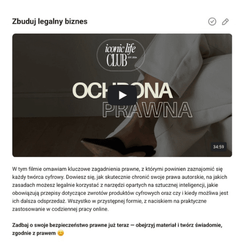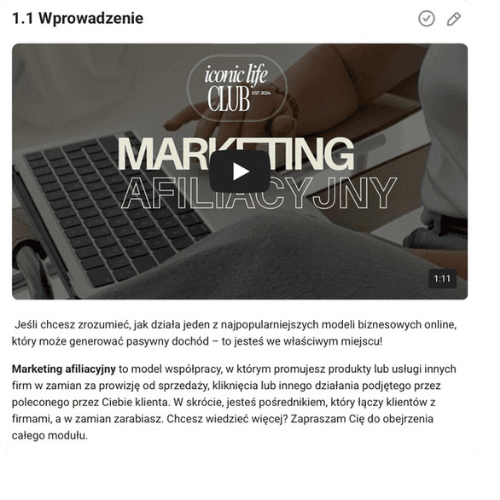Ten moduł to klucz do zrozumienia, jak budować biznes online w teorii i w praktyce oraz jak robić to skutecznie, mądrze i świadomie. Poznasz model biznesowy na którym opiera się Iconic Life Club i zrozumiesz jak możesz zarabiać tak jak robimy to my.